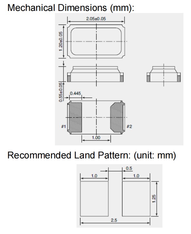 臺灣TST嘉碩晶振TZ2528A,2012兩腳貼片晶振,32.768KHz時鐘晶振,尺寸圖