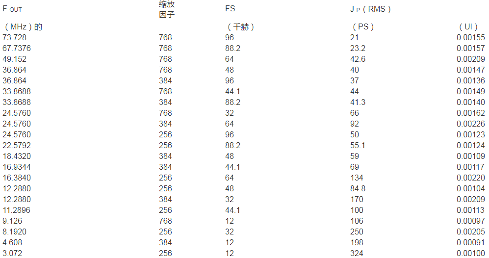 測量輸出CLK抖動的設置對于石英晶體振蕩器,抖動是一項重要的性能測量.有兩種最常用的抖動定義:周期抖動和周期間抖動,見圖3細節.為了測量抖動,我們可以使用高速數字采樣示波器對大量數據進行采樣,并根據定義計算抖動.Tektronix(TDS7254)或Lecroy(Wavepro960)的示波器使用配備的軟件提供這些測量.我們還可以使用高速數字示波器來測量時域中的周期抖動.圖3顯示了設置.通過時域方法,我們無法測量周期到周期的抖動.但是,如果每個周期的晶振抖動噪聲是獨立且相同分布的,則周期間抖動是周期抖動的1.414倍.MAX9485可根據不同的音頻采樣頻率和頻率比例因子產生21種不同的輸出頻率.我們使用了圖4中所示的設置測量所有可能的輸出CLK頻率的周期抖動.