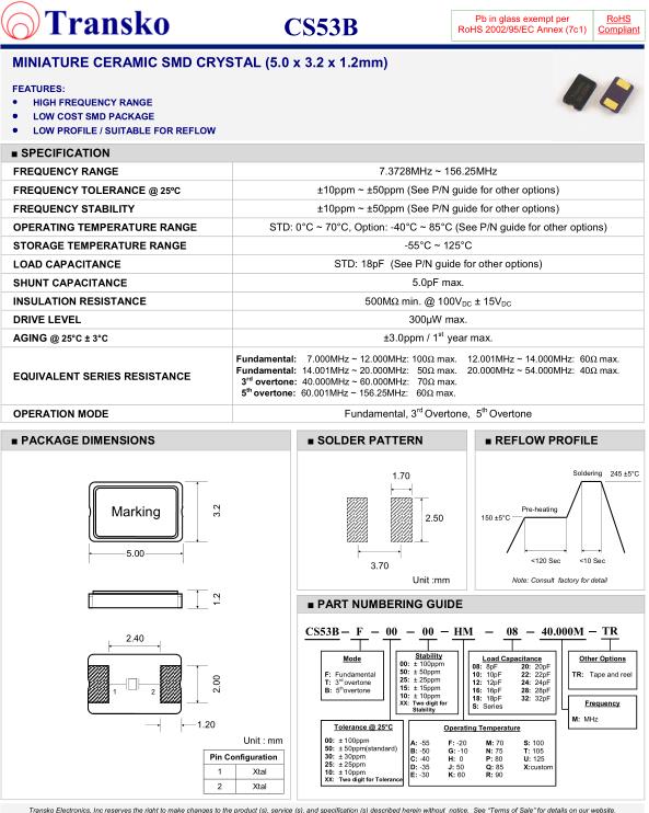 | SPECIFICATION-Transko晶振 | CS53B晶振 |