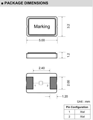 Fundamental: 7.000MHz ~ 12.000MHz: 100Ω max. 12.001MHz ~ 14.000MHz: 60Ω max. Fundamental: 14.001MHz ~ 20.000MHz: 50Ω max. 20.000MHz ~ 54.000MHz: 40Ω max. 3 rd overtone: 40.000MHz ~ 60.000MHz: 70Ω max. 5 th overtone: 60.001MHz ~ 156.25MHz: 60Ω max. |