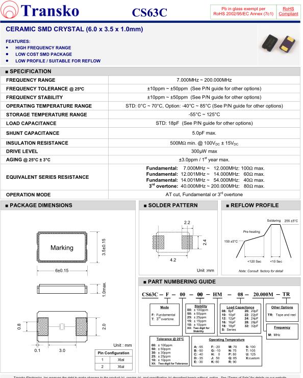 | SPECIFICATION-Transko晶振 | CS63C晶振 |