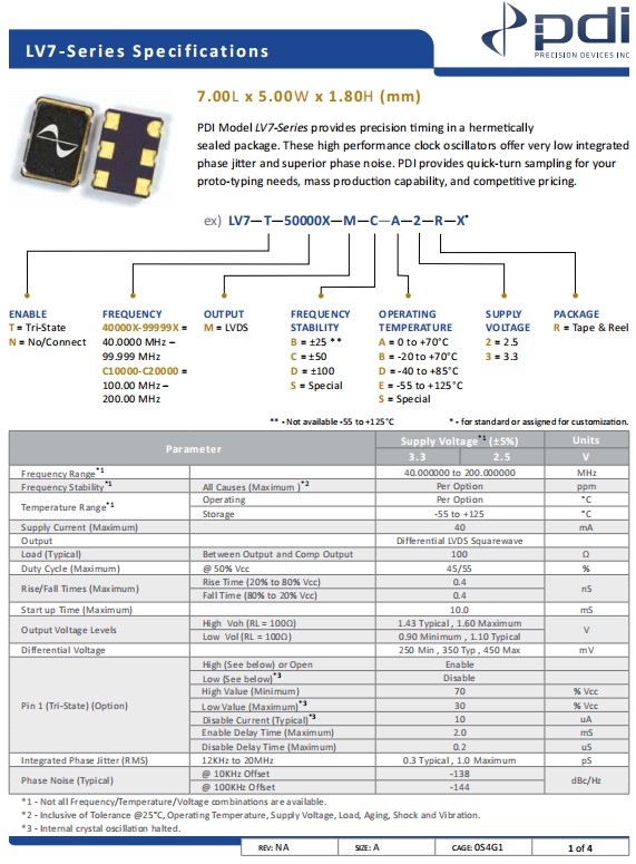 Wi2wi時鐘振蕩器,LV7-T-C10000-M-C-D-3-R-X,以太網晶振,參數表