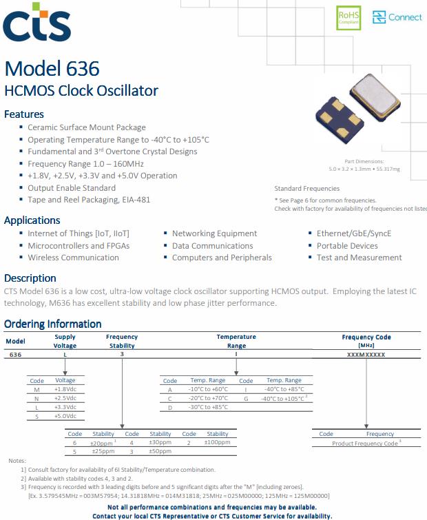 | 636M3C030M00000 | CTS振蕩器 | 636 | 30MHz | ±50ppm |