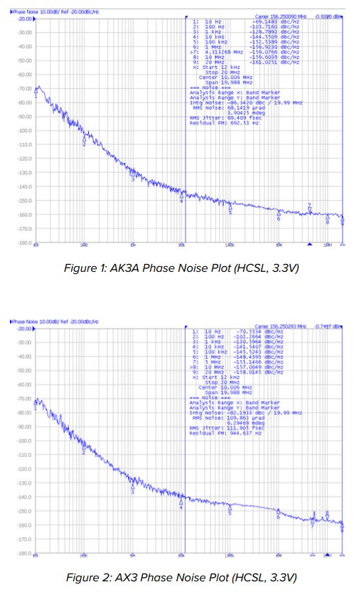 Table 3: AK3A vs AX3 RMS Phase Jitter (Vdd = 3.3V, Typical)