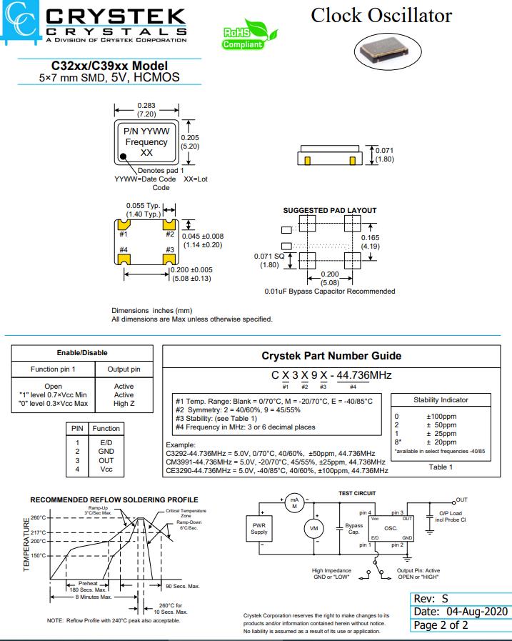 | C3290-20.480 | CRYSTEK振蕩器 | C3290 | XO (Standard) | 20.48MHz | ±100ppm | 0°C ~ 70°C |