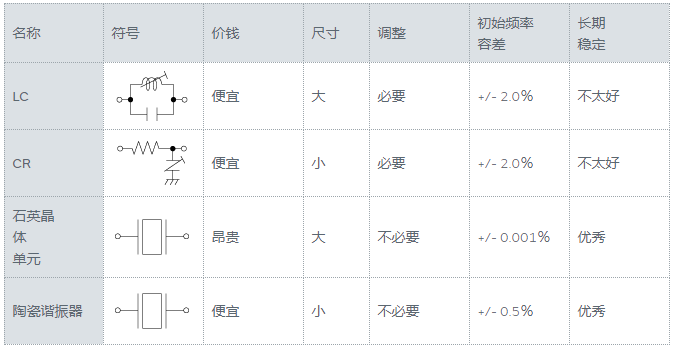 石英晶振的振蕩頻率溫度系數為10-6/°C或更低,LC/CR振蕩電路的溫度系數約為.10-3至10-4/°C.另一方面,陶瓷諧振器在-20至+80℃的范圍內提供10-5/℃的溫度系數.