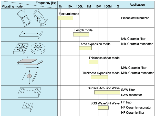 陶瓷諧振器CERALOCK®利用通常的鋯鈦酸鉛(PZT),其提供取決于共振頻率各種振動行為(模式)的壓電陶瓷的機械共振.通常,石英晶體單元是眾所周知的機械定時裝置.另一方面,CR和LC振蕩電路是利用電諧振的定時裝置.