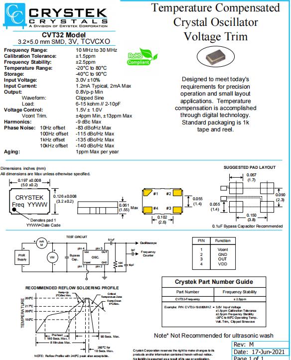 | CVT25-26.000 | CRYSTEK振蕩器 | CVT25 | Active | TCXO | 26MHz | ±2.5ppm | -30°C ~ 75°C |