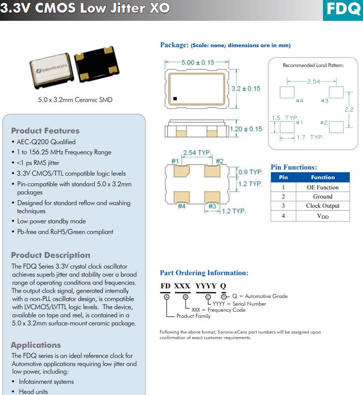 FDQ 系列是需要低抖動和低功耗的汽車應(yīng)用的理想?yún)⒖紩r(shí)鐘