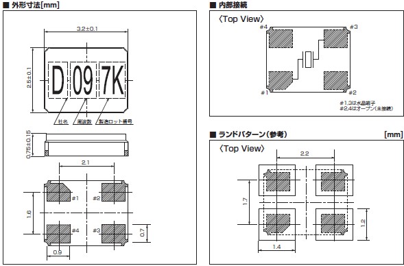 DSX321SL, 13 —60MHz, 3.2×2.5×0.5 mm,盤裝無源晶振金屬面