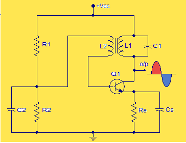 次級繞組線圈"L2"的方向使得其兩端的電壓與初級(L1)兩端的電壓相反180°.因此,反饋電路產生180°的相移,Q1晶體管產生另一個180°的相移.結果,在輸入和輸出之間獲得總相移.這是正反饋和持續振蕩的極其必要條件.