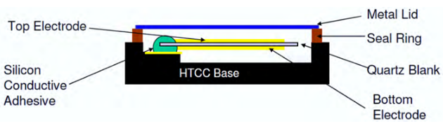 較小質(zhì)量的小型表面貼裝部件在防止沖擊和振動損壞方面具有優(yōu)勢.傳統(tǒng)的圓形水晶毛坯需要在大型封裝中進行三點或四點安裝,占用較大的PCB面積,以避免因振動或沖擊而損壞.在現(xiàn)代表面貼裝封裝中,坯料通常由兩個帶銀的環(huán)氧樹脂固定,該點也可以與晶振進行電連接.汽車級表面貼裝零件具有所謂的封裝內(nèi)坯料的四點安裝.這包括在放置晶體坯料后在前兩個頂部放置兩個額外的銀負載環(huán)氧樹脂點.這里的優(yōu)點是增加了安裝剛度,而不會花費更多的PCB面積.雖然這被稱為四點,