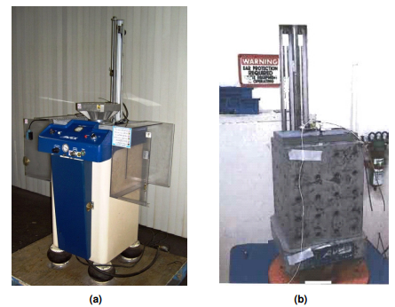 圖5.沖擊測試設備照片:(a)沖擊測試儀和(b)安裝塊