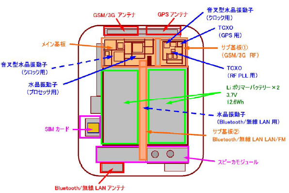 以蘋果公司的"iPad3G機(jī)型"為例,對(duì)水晶元件的使用方法進(jìn)行說(shuō)明.iPad內(nèi)部的模式圖如圖1所示,使用用諧振器元件如表1所示.