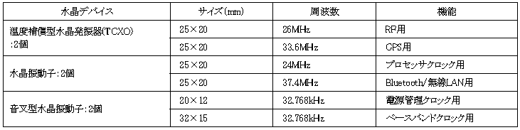表1水晶器件的使用詳細(xì)例子(iPad3G型)