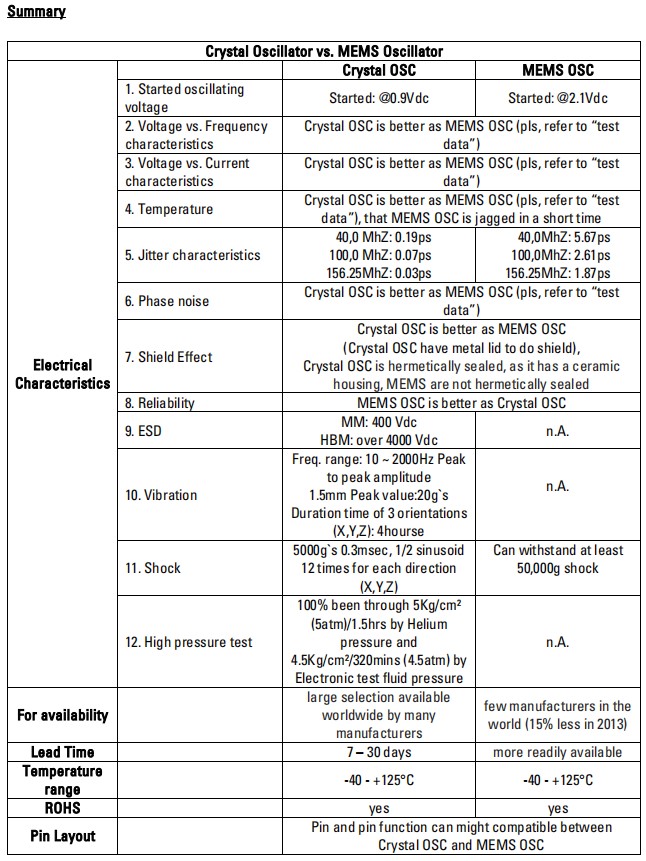 晶體振蕩器與MEMS振蕩器性質的比較