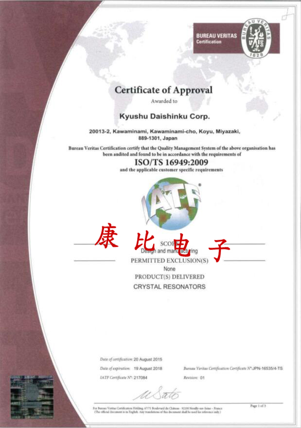 科技的不斷高速發(fā)展,導(dǎo)致所使用到的電子元件的需求量也是不斷的增長(zhǎng),同時(shí)制造商也是不斷增長(zhǎng),即使如此,日本大真空株式會(huì)社在晶振行業(yè)中仍舊保持著不動(dòng)搖,無(wú)法撼動(dòng)的地位,KDS晶振集團(tuán)自1959年成立以來(lái),大真空是“信任的人”,三個(gè)被稱為“信得過(guò)企業(yè)”,“信任”組,哲學(xué)的“信得過(guò)產(chǎn)品”創(chuàng)造產(chǎn)品,致力于專業(yè)生產(chǎn)晶振,SMD晶振,石英晶體振蕩器,差分晶振,溫補(bǔ)晶振等水晶頻率元件,以滿足時(shí)代的尖端的需求我們鼓勵(lì)并與世界各地的客戶建立了信任關(guān)系.作為一家在全球運(yùn)營(yíng)的石英晶振器件制造商,將開(kāi)發(fā)考慮到全球環(huán)境的石英晶體諧振器件,并為實(shí)現(xiàn)更方便舒適的下一代電子社會(huì)做出貢獻(xiàn),生產(chǎn)的KDS晶振產(chǎn)品獲得了國(guó)際ISO/TS16949:2009認(rèn)證,該認(rèn)證是對(duì)汽車(chē)生產(chǎn)和相關(guān)配件組織應(yīng)用ISO9001:2008的特殊要求,其適用于汽車(chē)生產(chǎn)供應(yīng)鏈的組織形式.目前,國(guó)內(nèi)外各大整車(chē)廠均已要求其供應(yīng)商進(jìn)行ISO/TS16949:2009認(rèn)證,確保各供應(yīng)商具有高質(zhì)量的運(yùn)行業(yè)績(jī),并提供持續(xù)穩(wěn)定的長(zhǎng)期合作,以實(shí)現(xiàn)互惠互利.