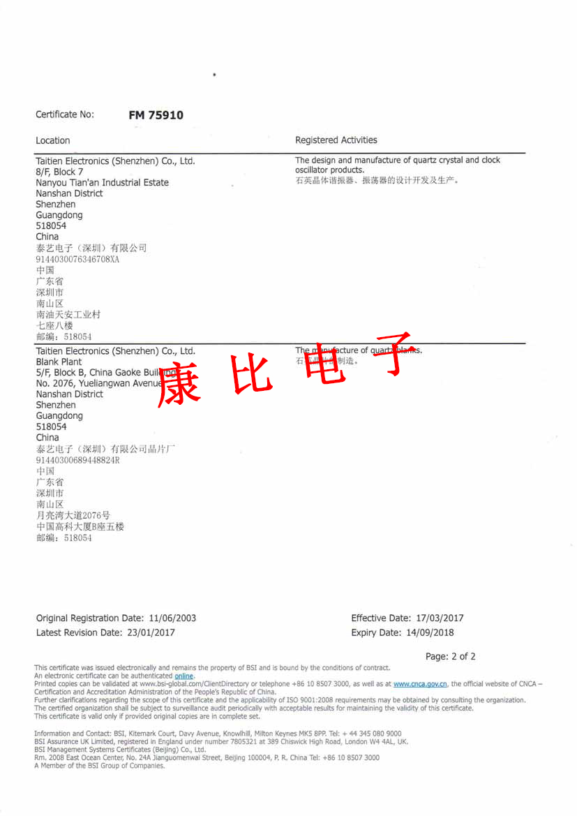 更多>>泰藝電子ISO9001:2008質(zhì)量管理認證