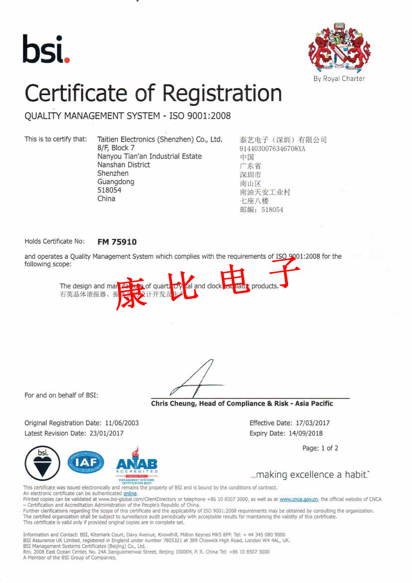 - [2019-02-21]希華晶體科技IECQ質(zhì)量認證