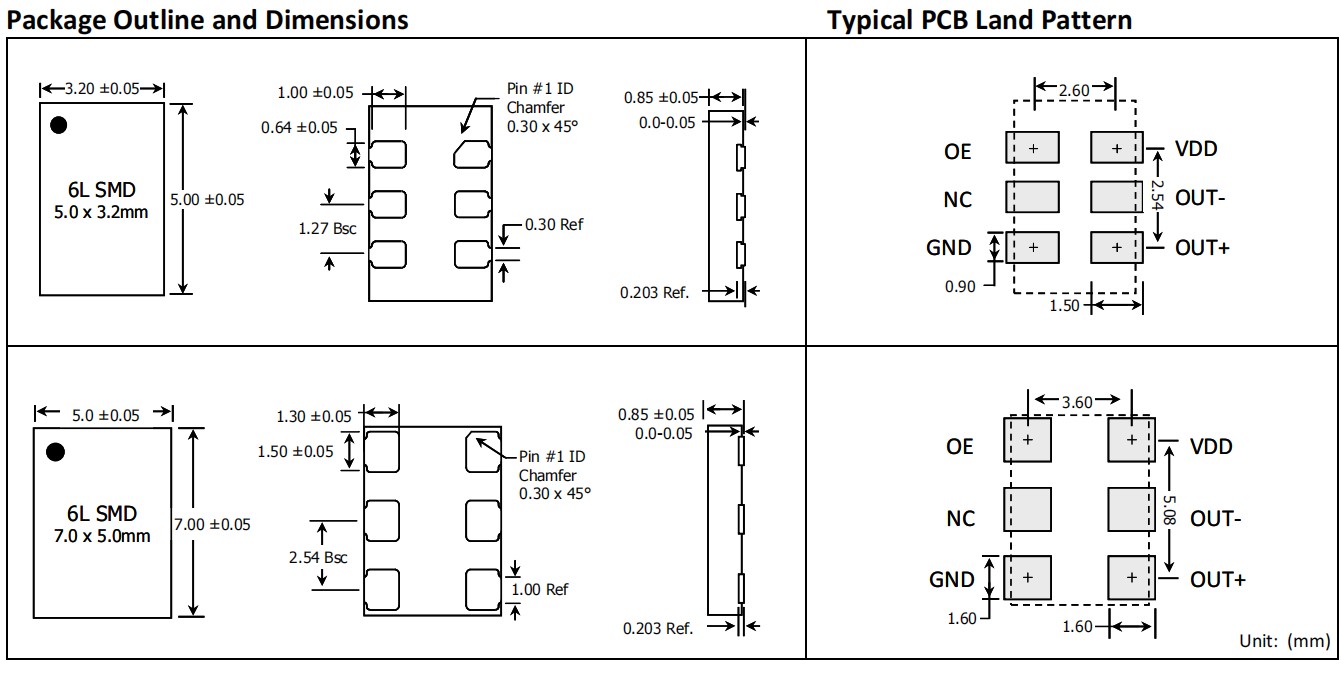 艾迪悌7050mm晶振,4MA156250Z4AACUGI8,LVDS輸出晶體振蕩器,4MA150000Z4AACUGI8,低電壓6G晶振,尺寸圖
