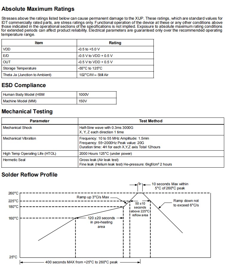 | Output Frequency (Standards) | F OUT | 100MHz, 106.25MHz, 125MHz, 150MHz, 155.52MHz, 156.25MHz, 200MHz, 212,5MHz,250MHz, 300MHz, 312.5MHZ, 400MHz (Contact IDT for additional frequencies) | ||||||||||||||||||||||||