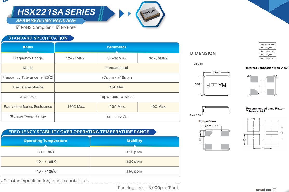 | X2B030000FA1H-X | HSX221SA | HELE加高 | SMD Crystal Resonators SMD-2520 RoHS |