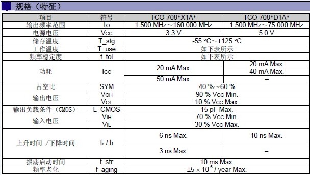 晶體振蕩器規格