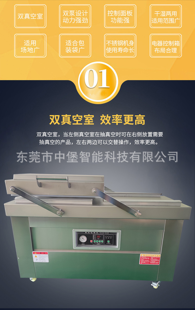 - 自動化程度:自動化程度高的雙室真空包裝機,如配備自動上料、下料、分揀等功能,能減少人工操作時間,提高工作效率。