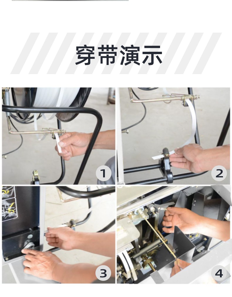 4. 廣泛適用性:可適應各種形狀、尺寸的物品打包,無論是規則的長方體、正方體,還是形狀不規則的物品,都能進行有效打包。同時,能兼容多種材質的打包帶,如塑料打包帶、塑鋼打包帶等,滿足不同行業、不同產品的包裝需求。