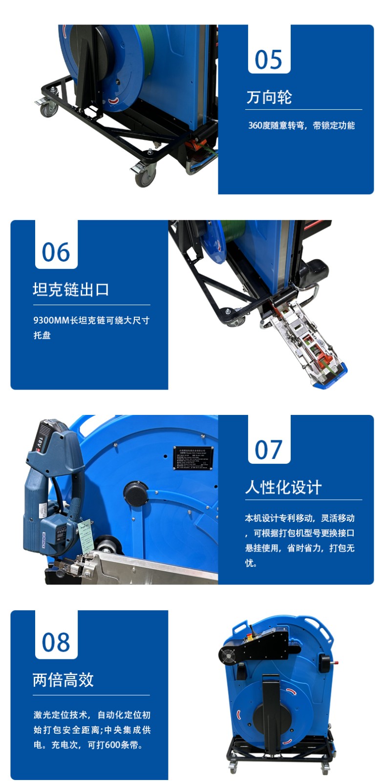 設(shè)備圍繞 “貨物 - 托盤(pán)一體化固定” 展開(kāi),核心功能覆蓋打包全環(huán)節(jié),無(wú)需人工干預(yù)關(guān)鍵動(dòng)作: