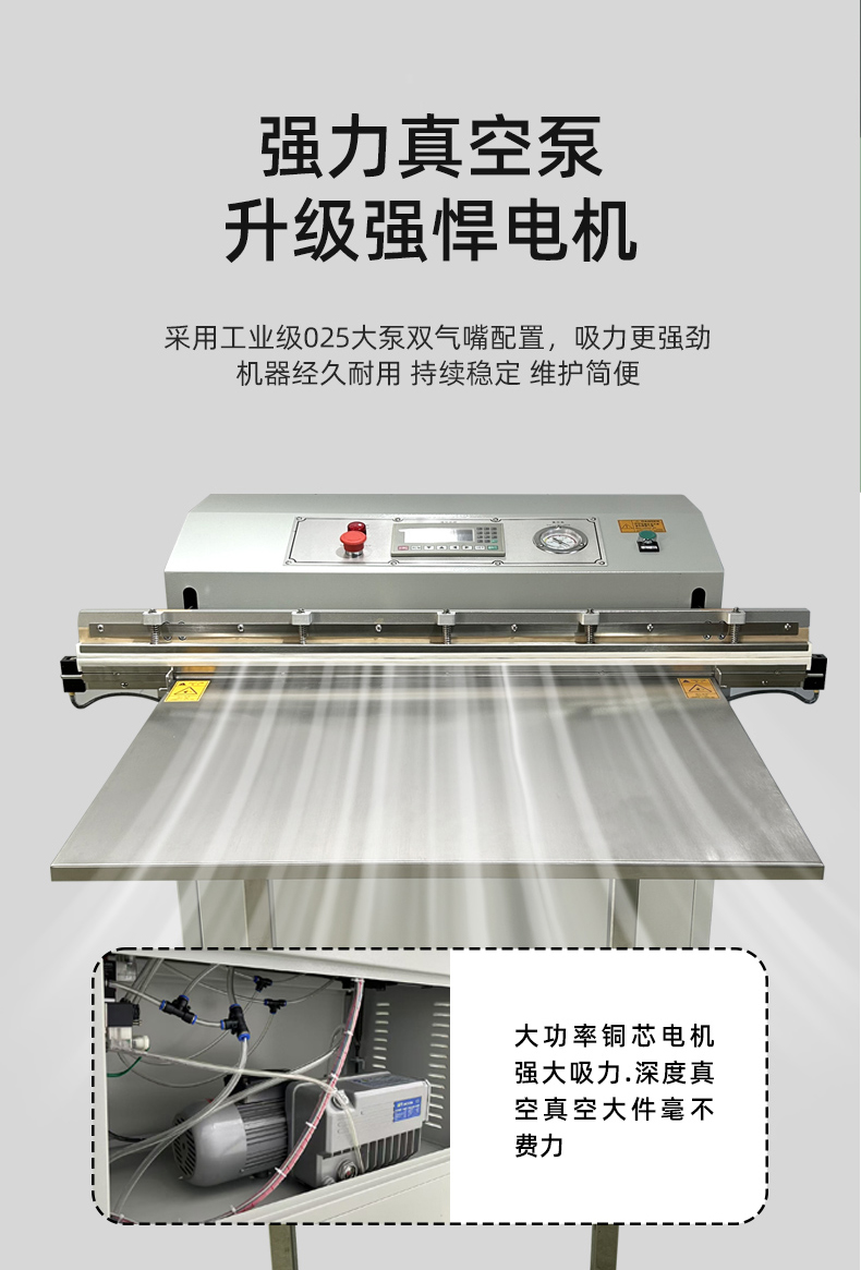 外抽真空包裝機不受包裝容器形狀和尺寸限制,無論是大型工業零部件還是小型家用物品,只要抽氣口能與抽氣嘴連接,均可進行真空包裝