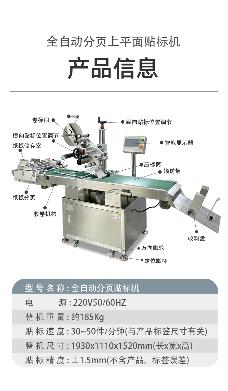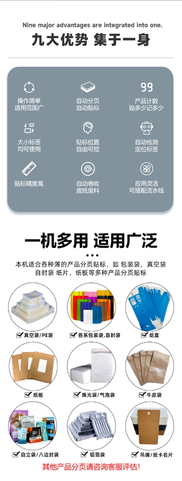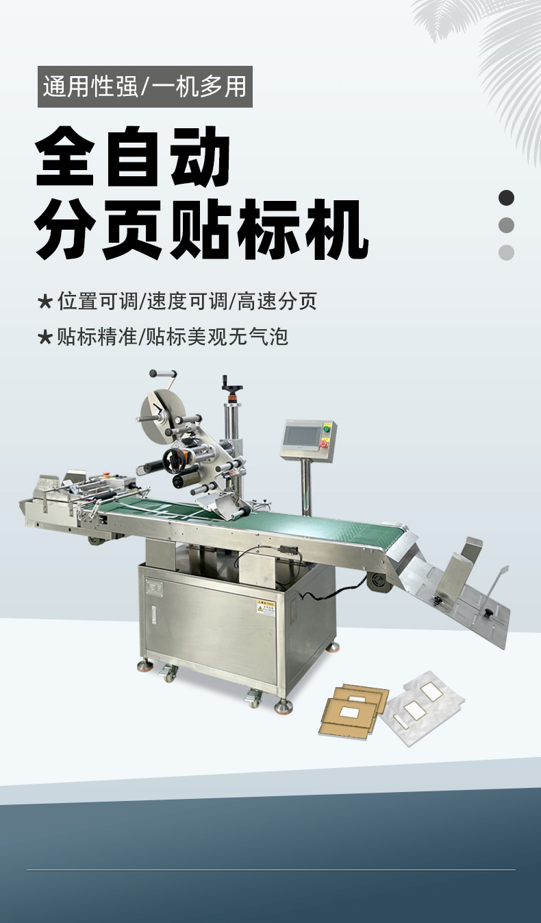 分頁貼標(biāo)機(jī)高效自動化,應(yīng)用覆蓋多行業(yè)輕薄平面類產(chǎn)品,適配性極強(qiáng)