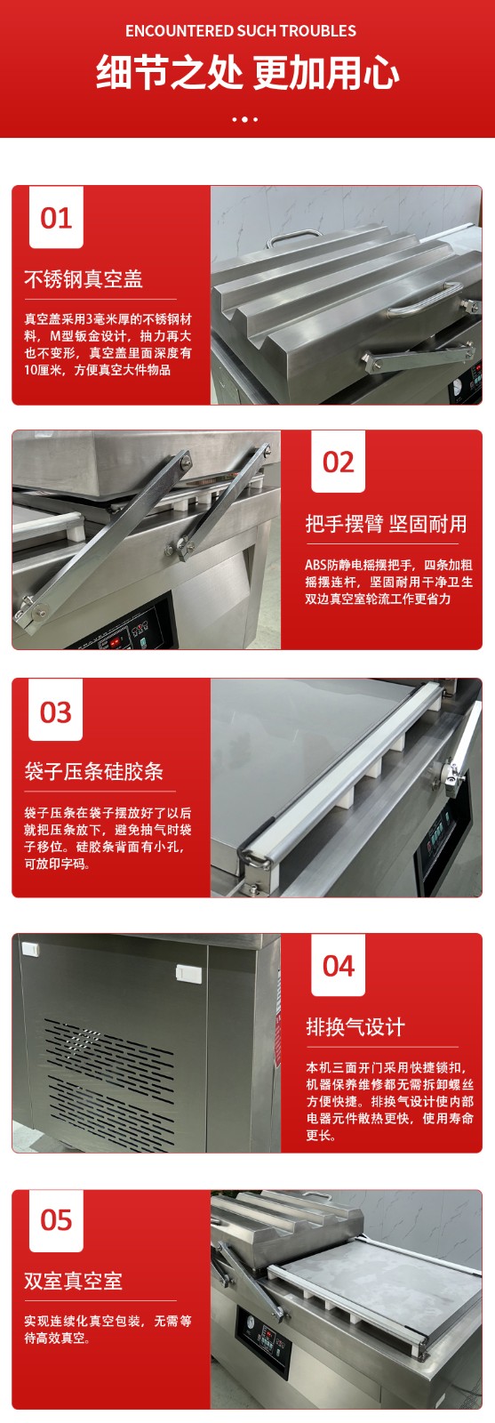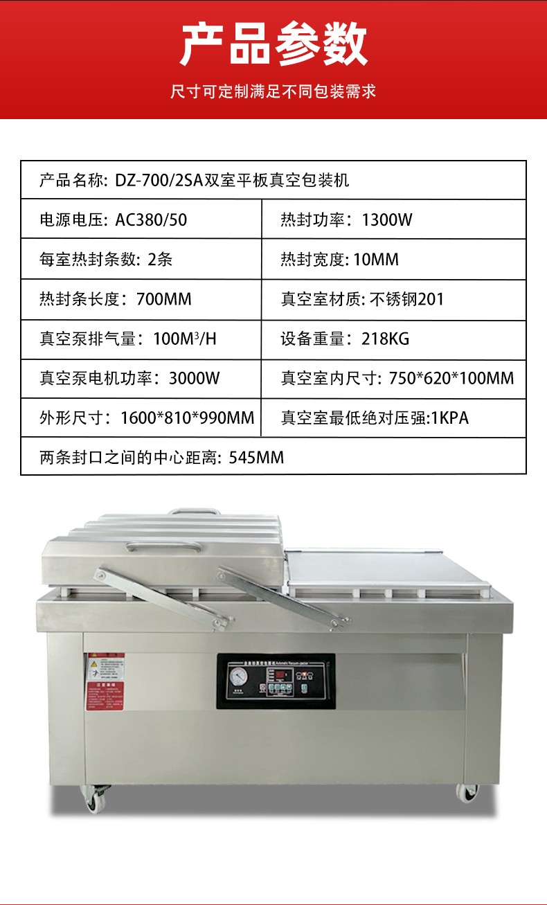 同等規格下,雙室機的單位時間包裝量是單室機的 1.5-2 倍,尤其適合中小型加工廠的連續批量生產。