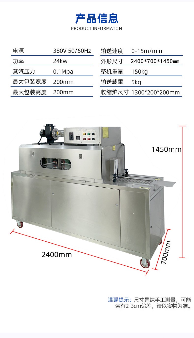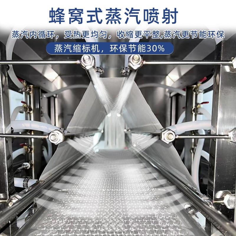 • 收縮效果好:蒸汽能夠全方位地接觸薄膜,使薄膜各個部位受熱均勻,收縮效果一致,可有效避免收縮不均勻、出現褶皺等問題,能讓包裝膜緊密、平整地貼合在產品表面,提升產品的外觀品質14
