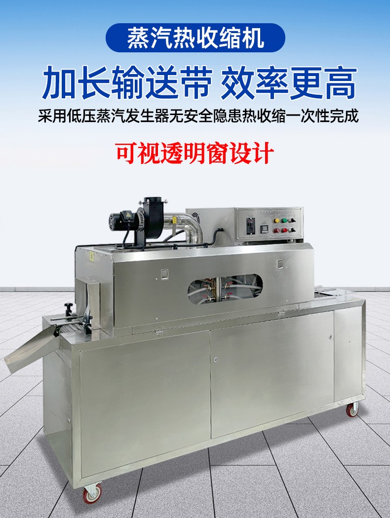 蒸汽收縮機的蒸汽能夠全方位地接觸薄膜,使薄膜各個部位受熱均勻,收縮效果一致