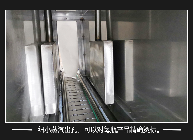 - 收縮通道:是產品和包裝薄膜接受蒸汽熱量的區域。通道的尺寸根據產品的大小和形狀設計,其內部結構很重要。通常有蒸汽噴頭或蒸汽孔,用于均勻地噴射蒸汽。此外,通道還可能配備導流板和通風裝置,幫助蒸汽均勻分布和循環,確保薄膜能夠均勻收縮。