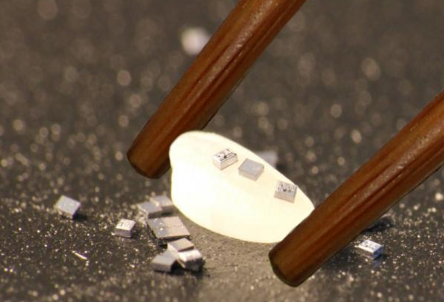 在這張照片中,將單個晶圓級封裝的pMEMS晶振放在一粒米上.