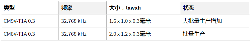 微晶晶振32.768kHz晶體系列在全球數千種應用中具有良好的記錄,