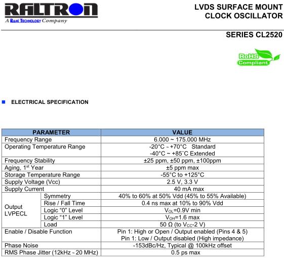 | RMS Phase Jitter (12kHz ~ 20 MHz | 0.5 ps max | |