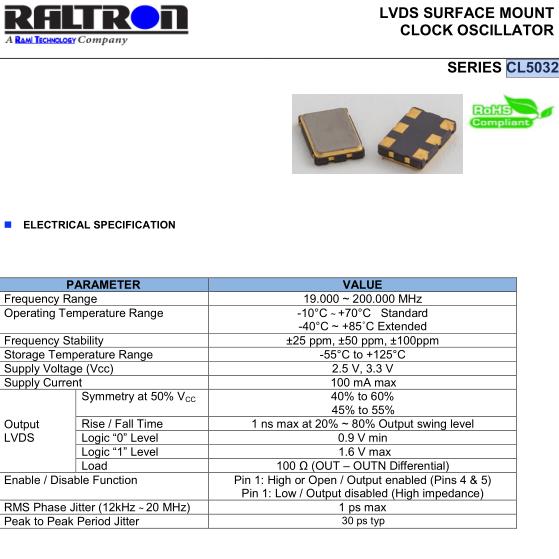 Raltron晶振自成立多年來,公司致力于石英晶體,貼片晶振,石英晶體振蕩器,有源晶振的研究和開發,使得石英晶體,石英晶體振蕩器的技術不斷創新,研發出不計其數的優秀產品.拉隆晶振,CL5032晶振,CL5032-155.520-2.5-25-X-T-TR晶振.