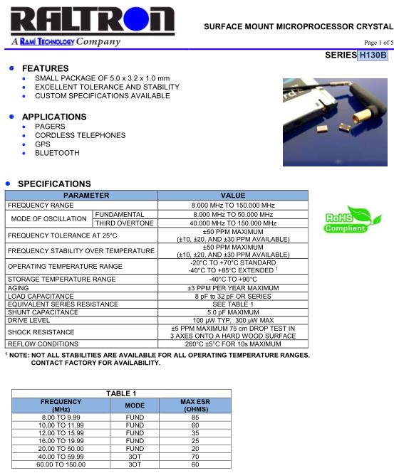 | THIRD OVERTONE | 40.000 MHz TO 150.000 MHz | |