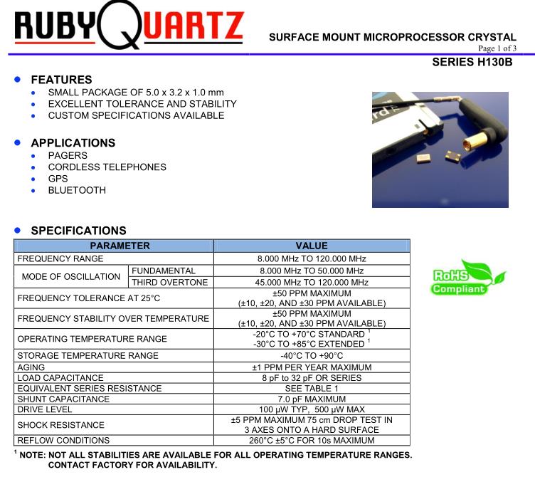 | DRIVE LEVEL | 100 µW typ, 300 µW max | |