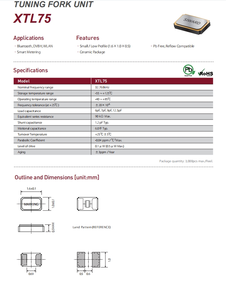 | XTL751-S999-544 | Siward | Siward | CRYSTAL 32.768 KHZ 20PPM CRYSTAL | XTL75 | 32.768 kHz | ±20ppm | 12.5pF |