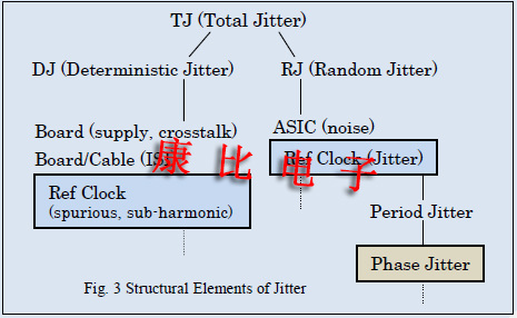 在其他系統(tǒng)中,DJ歸因于電路板PSU噪聲,串?dāng)_和電纜設(shè)計(jì)的影響導(dǎo)致頻帶不足,而RJ歸因于專用集成電路噪聲.系統(tǒng)設(shè)計(jì)者的任務(wù)是改進(jìn)專用集成電路設(shè)計(jì)或改變電路板布局和組件,以減少TJ.