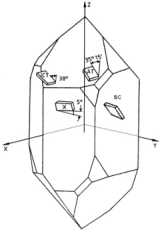 不同的石英晶體切割可以制成具有不同的性質。切口由圍繞晶軸的兩個旋轉角度phi和theta定義。最常見的切割是單旋轉AT切割(φ= 0°)和雙旋轉SC切割(φ= 22°)。兩種情況下的θ角都在34°左右。其他雙旋轉切割如MSC-,IT-,FC-,LD-也適用于特殊應用。