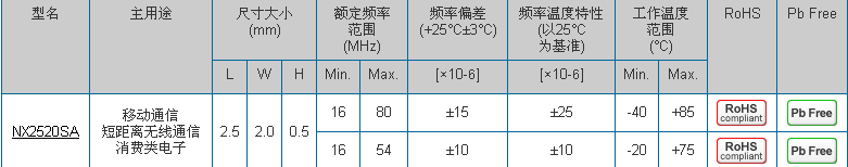 晶振NX2520SA,進口貼片晶振,汽車導(dǎo)航晶振2520mm體積的晶振,可以說是目前小型數(shù)碼產(chǎn)品的福音,目前超小型的智能手機里面所應(yīng)用的就是小型的石英晶振,該產(chǎn)品最適用于無線通訊系統(tǒng),無線局域網(wǎng),已實現(xiàn)低相位噪聲,低電壓,低消費電流和高穩(wěn)定度,超小型,質(zhì)量輕等產(chǎn)品特點,產(chǎn)品本身編帶包裝方式,可對應(yīng)自動高速貼片機應(yīng)用,以及高溫回流焊接(產(chǎn)品無鉛對應(yīng)),為無鉛產(chǎn)品.